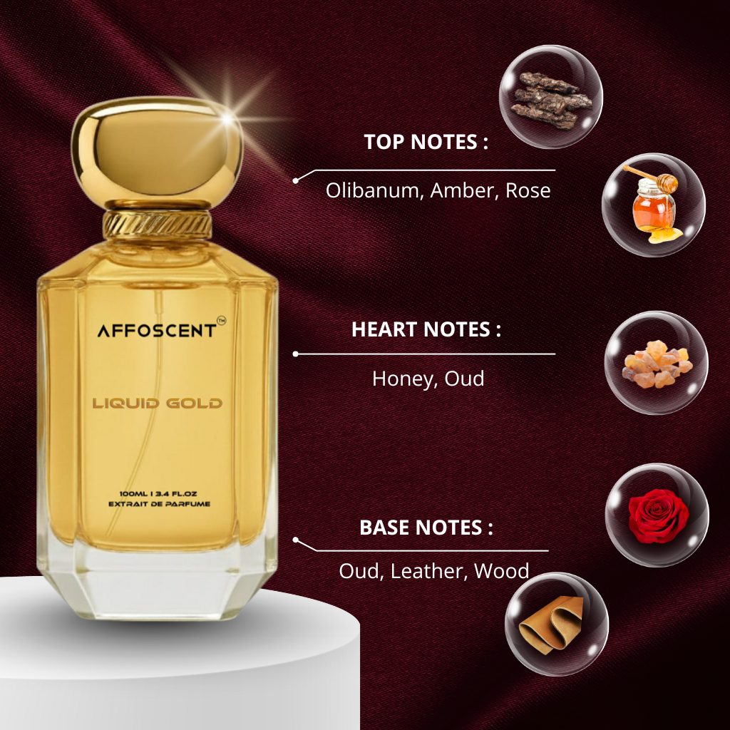 Liquid Gold Unisex Perfume is a masterpiece of sophistication and depth. It opens with rich notes of olibanum, amber, and rose — creating an aura of warmth and mystery from the very first spray. As the fragrance unfolds, golden honey and oud form the heart, delivering a sweet, resinous richness that feels both powerful and comforting.